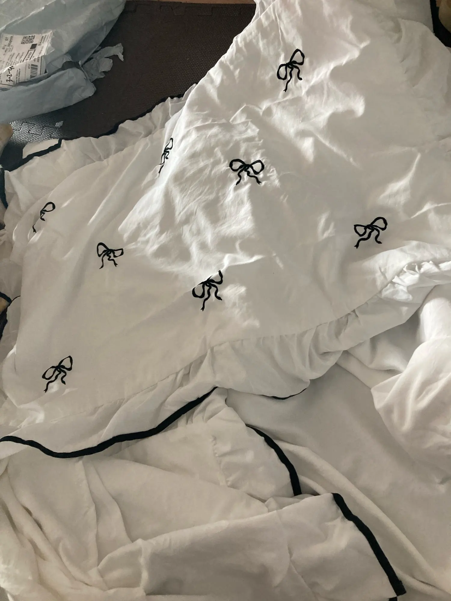 Coquette Embroidered Bow Ruffle Duvet Cover Set | Aesthetic Pad